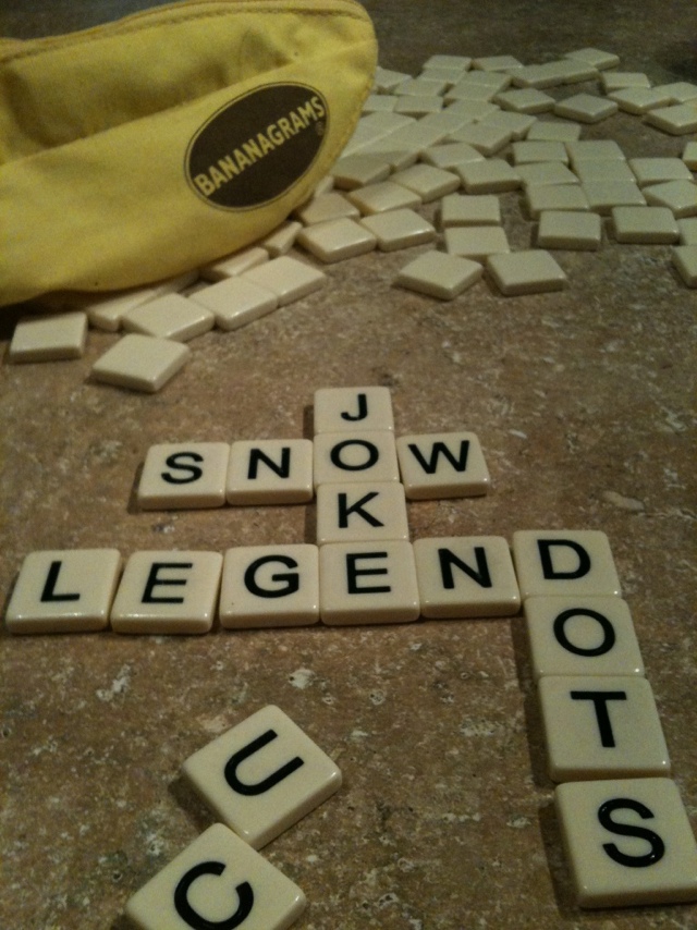 And Andrew and I played a rousing game of Bananagrams (thanks to my sister for this fab gift!).