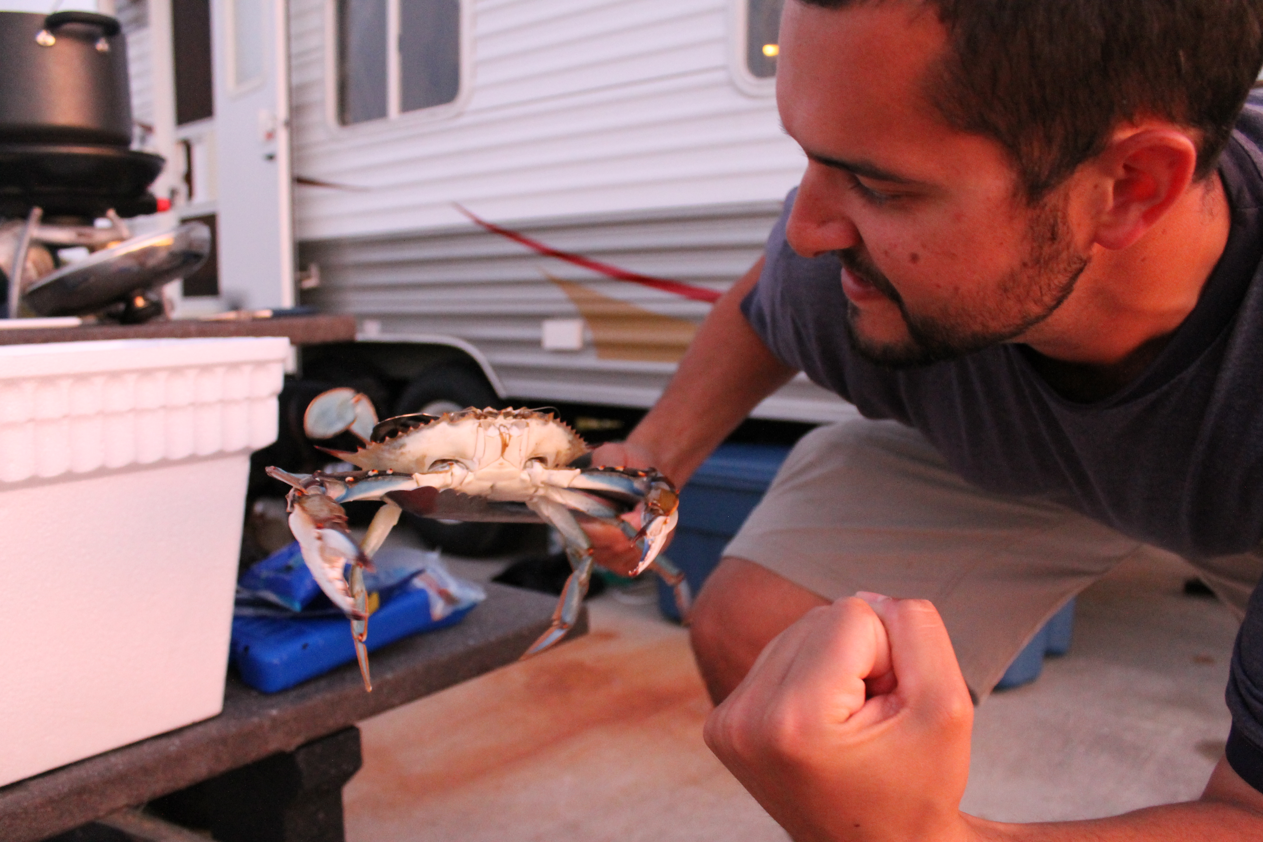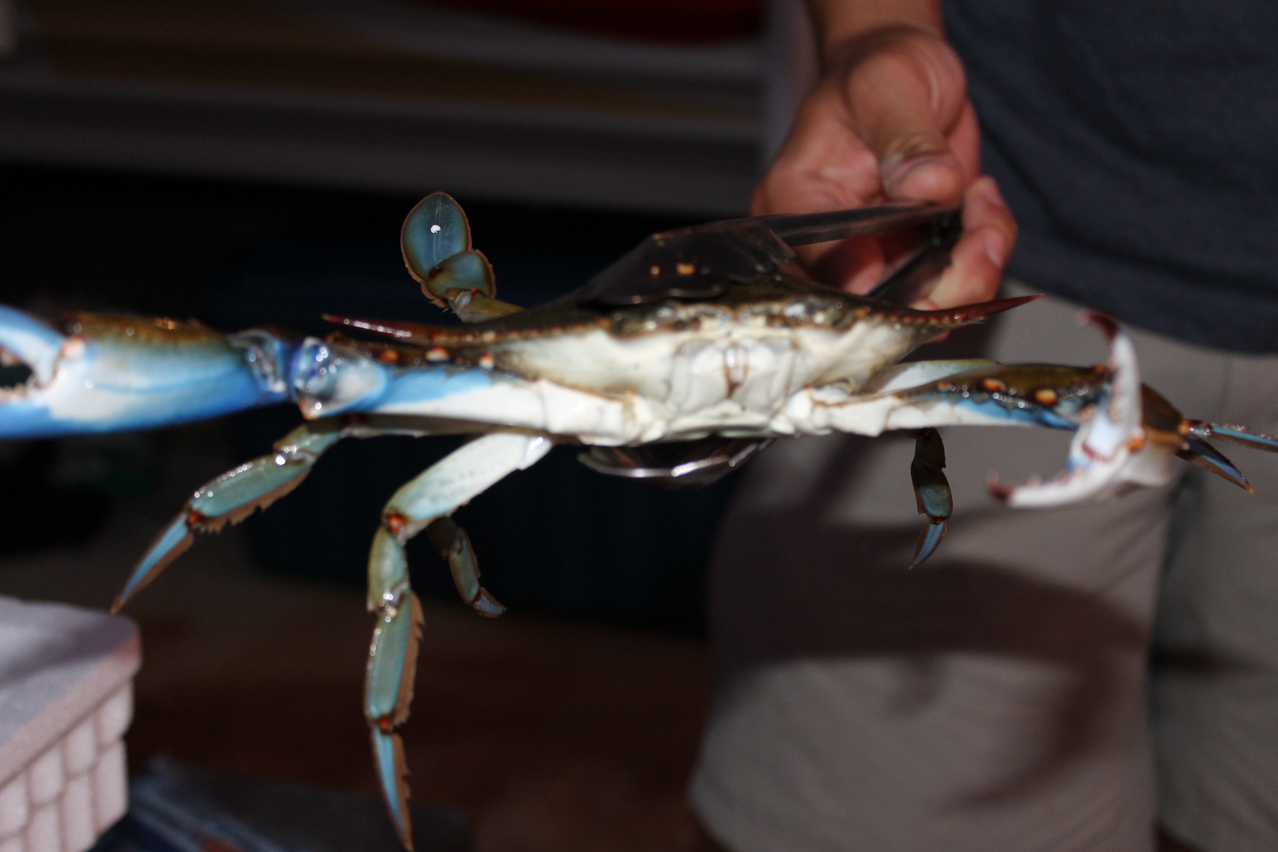 At some point last week we (Andrew) discovered something wonderful in the canal behind where we live…. Blue Crabs.