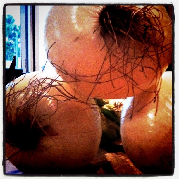 (I picked these beauties up at the produce stand, but vidalia should work just as well.)