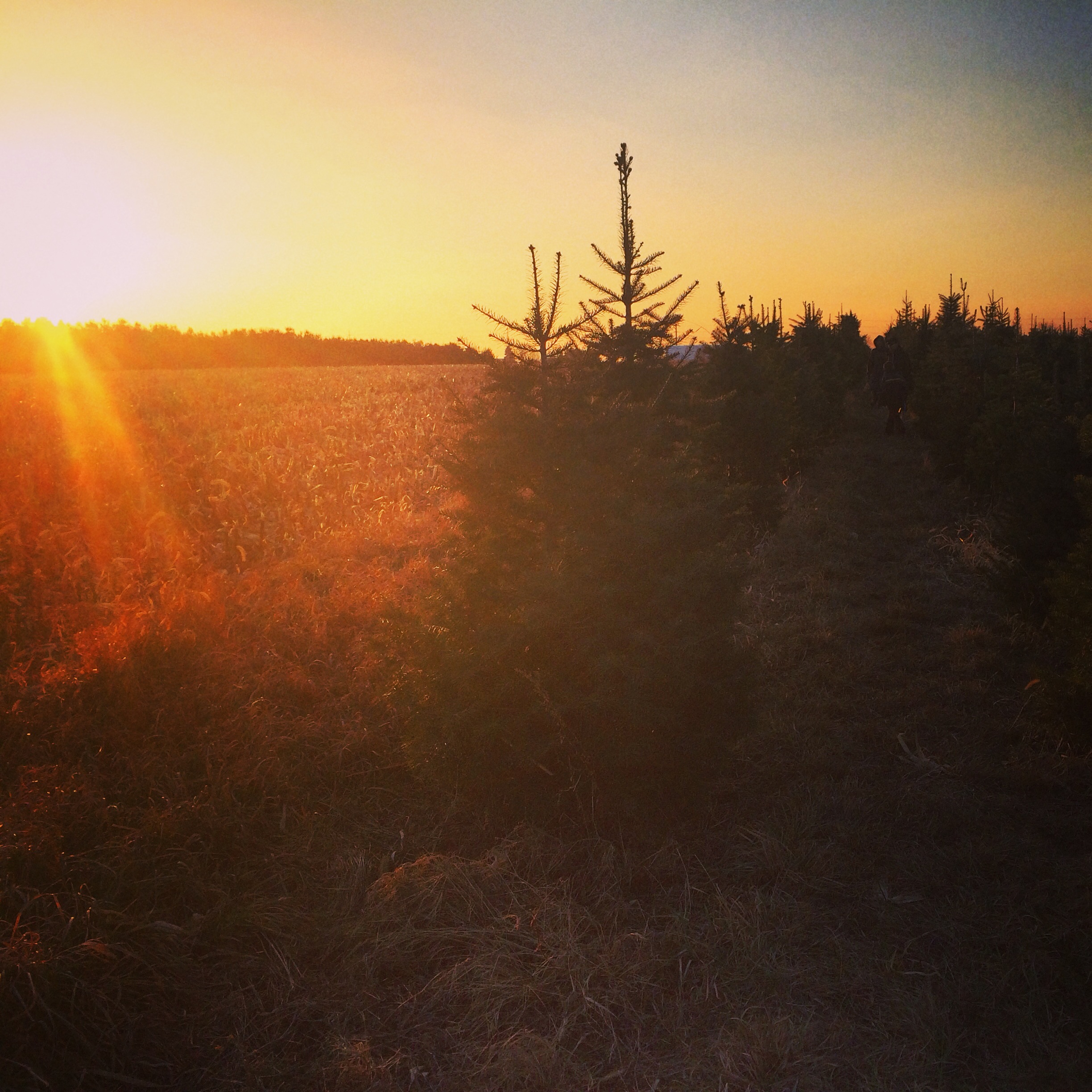 We drove an hour west, leaving the suburban sprawl behind and winding through midwestern farms and cornfields. When we finally arrived, we has less than an hour of sunlight left with which to pick our perfect tree. Though the sunset made for a beautiful setting, it also served as a stressfully ticking clock on my indecisiveness.