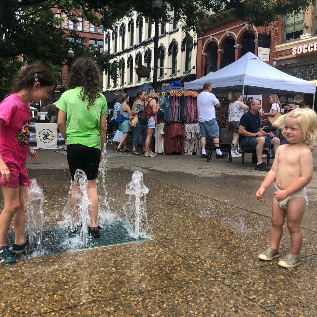 I’m a sucker for a good farmer’s market, and the downtown Knoxville one does not disappoint. Though I’d say it’s more than a market; it’s a scene. If you find yourself in Market Square on a summer Saturday morning, you’ll be met with a bevy of vendors selling everything from produce, meats, and freshly baked goods to shirts, jewelry, and pottery. I loved stopping to buy a bouquet from Napping Cat Flower Farm, who arranged gorgeous flowers for my wedding many years ago. I cooled off with a refreshing lavender honey soda from The Burns and the Bees and treated myself to a cute new shirt for hiking from Burlaep Apparel. But our favorite vendor on a hot day was Milk + Honey Ice Cream. With handmade quality and unique flavors like honey-orange and blueberry-lemon sorbet, we were all fighting over the last bites. Don’t worry if the kids get sticky from all that ice cream, market square has a small splash pad that’s great for playing and cooling off after a morning at the market.