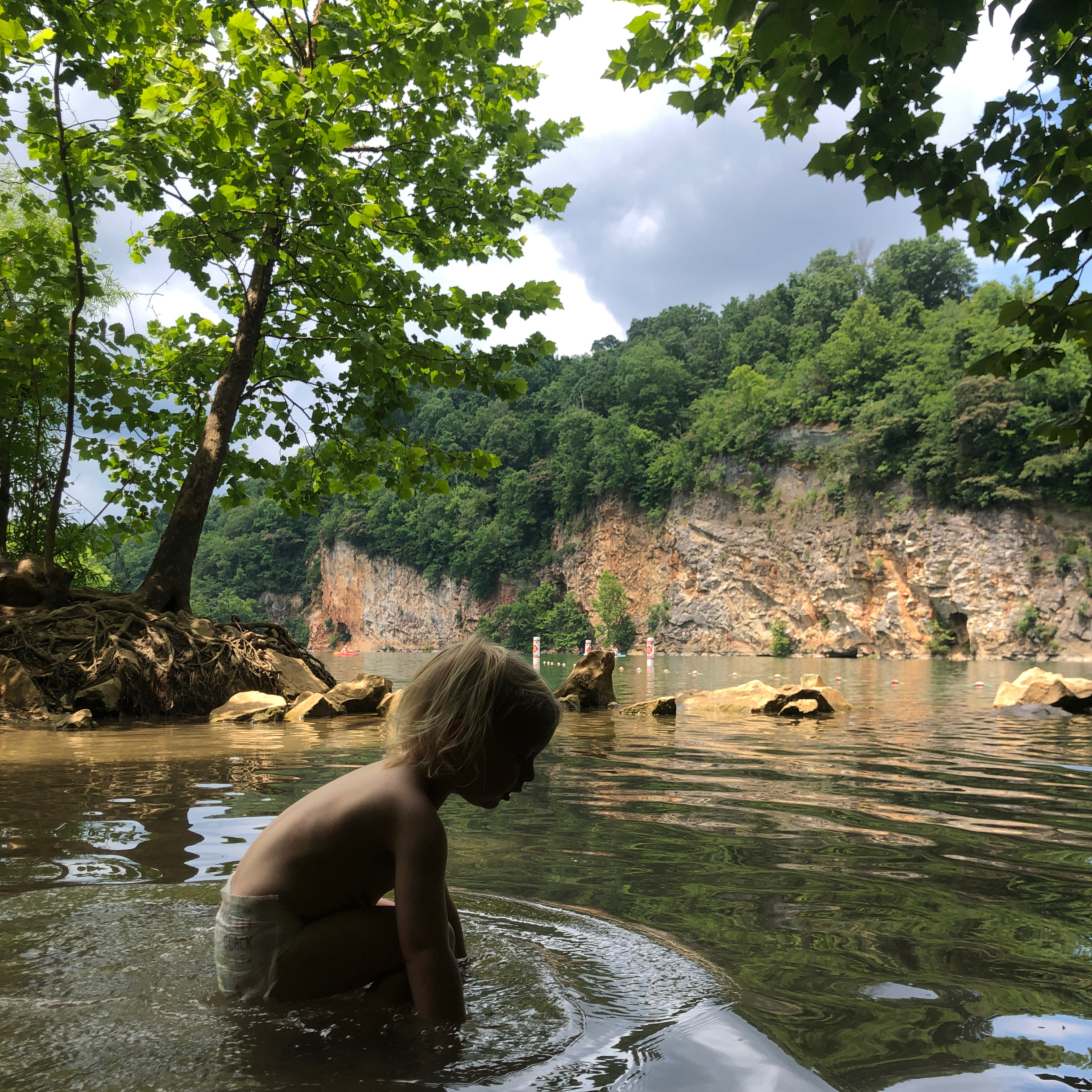Summertime in Knoxville is nothing if not hot, so a body of water to cool off is a must. Mead’s Quarry is ideally located between Ijam’s Nature Center (one of my old favorite spots) and Forks of the River WMA, making it the perfect spot to cool off after a hike or sunflower walk. Since the quarry has a shallow beach, it was a great spot for my younger swimmers to play and feel safe, but there’s also plenty of deeper water, which my older swimmer enjoyed. Personally, I’d love to come back with fewer children and rent a kayak or paddle board to relax and explore the quarry more. But on this trip, it provided lots of play and splashing with the little ones, free of charge.
