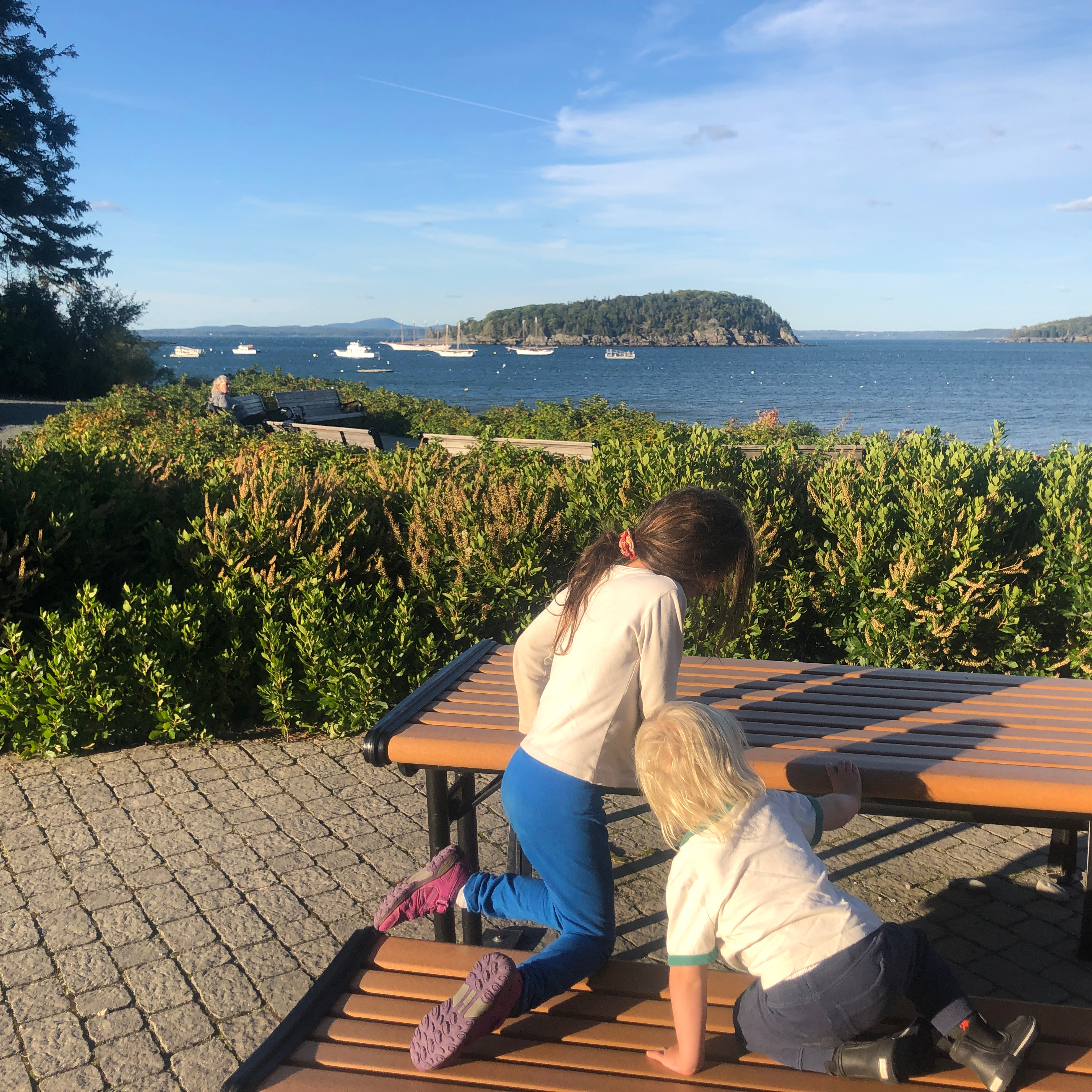 Because I was trying to extend our time in Bar Harbor as much as possible, I convinced my less than enthused husband that we should grab dinner before hitting the road. We didn’t want to do the whole restaurant sit-down deal because, kids, but we did want to try the highly revered Side Street Cafe. Within 15 minutes, we had our food and found an out of the way park to enjoy it. The evening view from Grant Park was incredible – golden sunshine cascading over the harbor, bathing the rocky shoreline in an iridescent light. The burger and cuban on fresh bread were delicious, as was the homemade Mac and cheese. Despite the fact that our kids refused to eat it because, kids. The picnic was windy and rushed, the kids were rambunctious and loud. Still, the setting, the food, and the overall experience made it the perfect way to wrap up our time in Bar Harbor and Acadia.